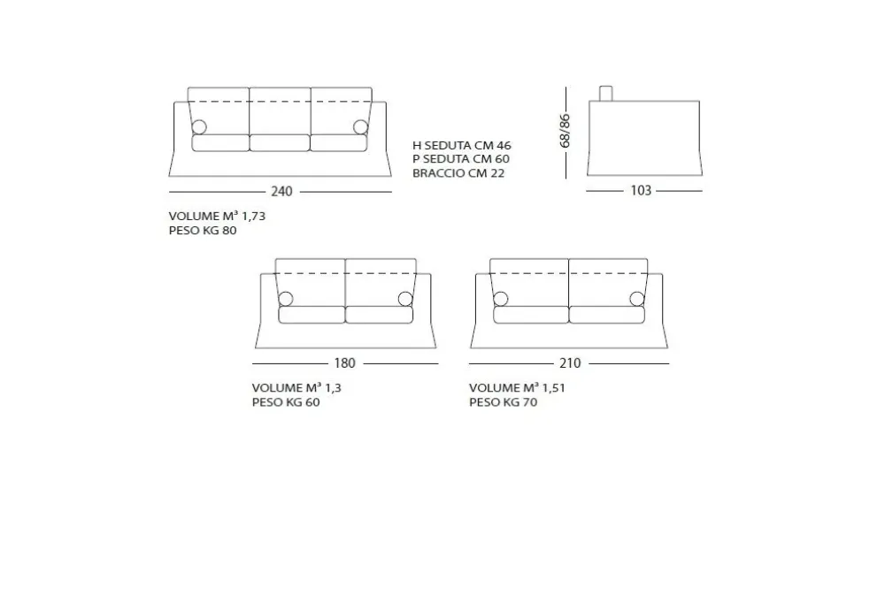 - Questa soluzione è totalmente imbottita in poliuretano: questo è, tra i materiali pregiati selezionati dal marchio, ideale per assicurare sofficità e resistenza dopo anni di uso prolungato.