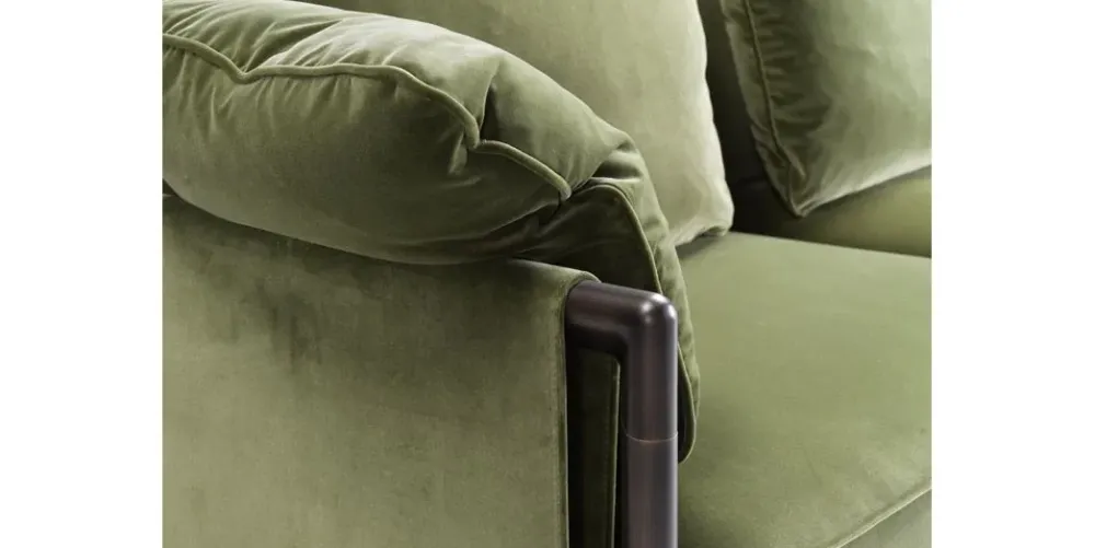 I cuscini : schienale in ovatta ad alta grammatura con inserto in gomma. La seduta in gomma poliuretanica a densità differenziata.