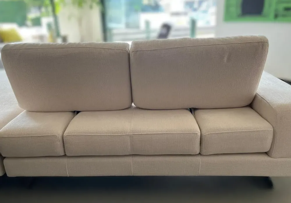 Divano in tessuto lavabile in lavatrice, cm. 278*155/175*prof. sedute 106/126*h.81.