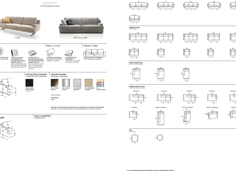 Il prezzo esposto è relativo al divano Oxford Regular con Pouf e Penisola come nelle foto, prodotto di alta qualità, sedute e schiene in piuma con supporto in puliuretano espanso.