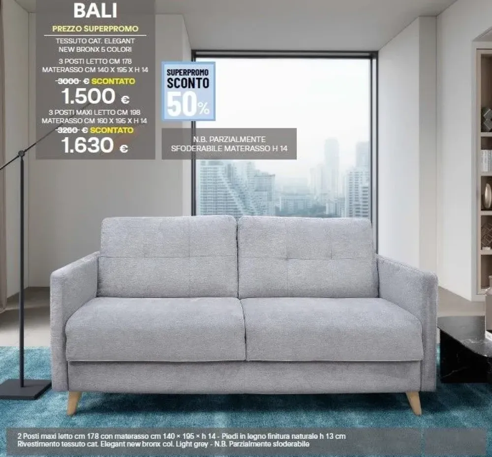 Gli elementi da collocare nel living sono da scegliere in modo che possano assicurare il comfort utile al nostro relax. Gli imbottiti, come questo modello Bali ad un prezzo imperdibile, sono in grado di personalizzare gli ambienti domestici grazie alla qualità di rivestimenti e materiali.