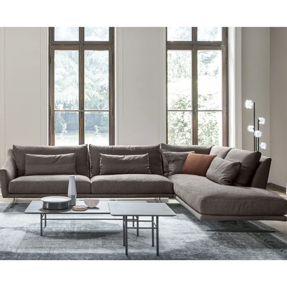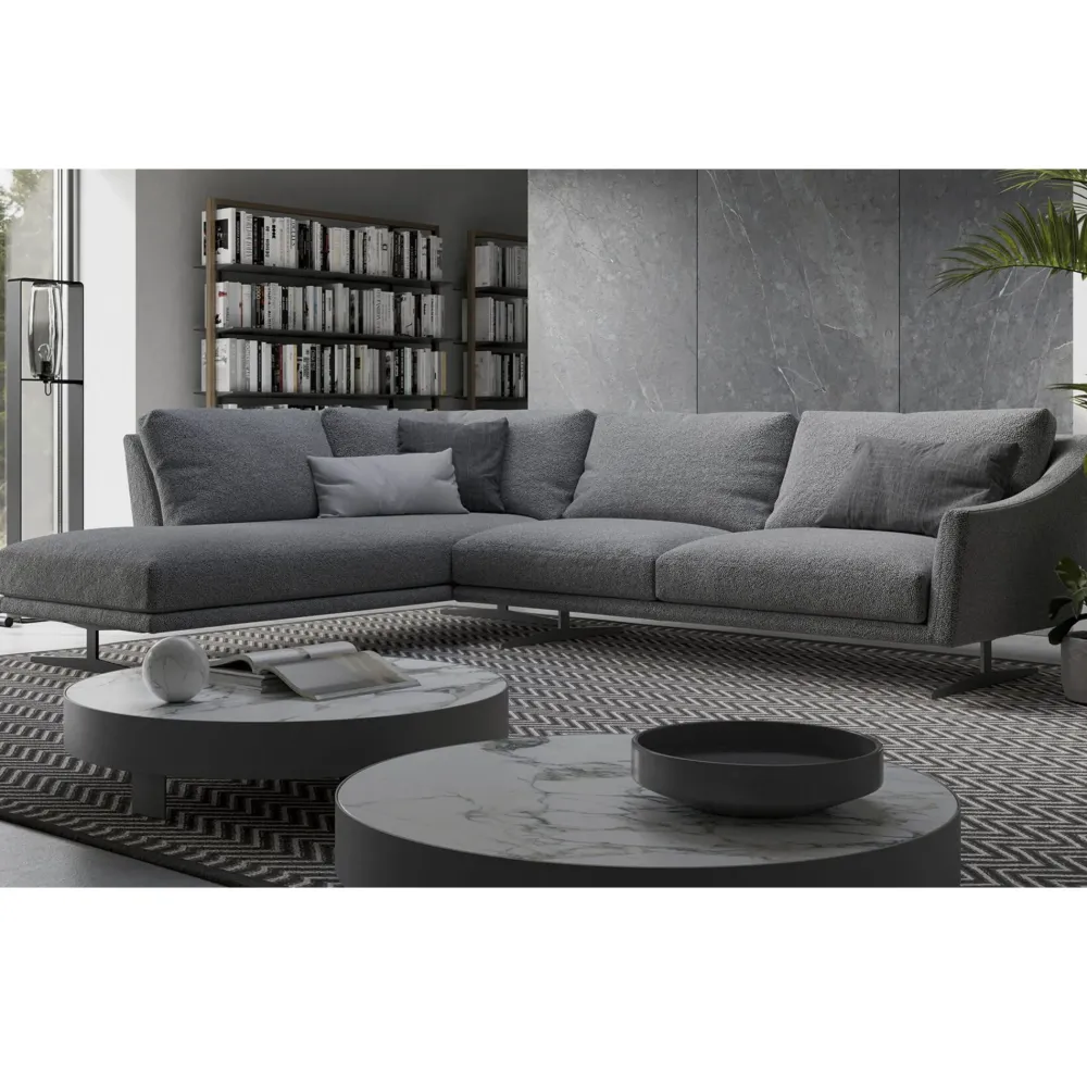 Le sue forme leggere e raffinate, unite ai cuscini morbidi e imbottiti, offrono un comfort ottimale e un tocco di freschezza minimalista al soggiorno.