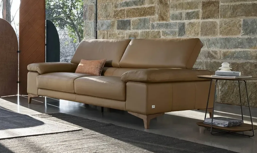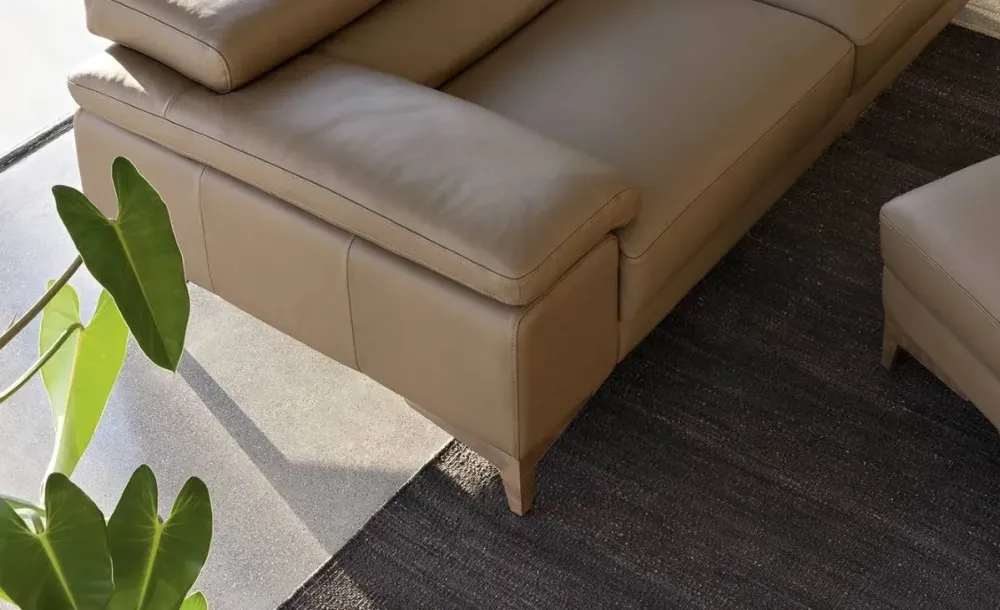 Il modello è rivestito in pelle di alta qualità (categoria P, colore a scelta incluso nell offerta) e poggia su piedini in legno di faggio alto 13 cm, finitura rovere canaletto, perfettamente abbinati ai toni caldi e autunnali della pelle. Il risultato? Un armonia cromatica e materica che dona al tuo soggiorno classe, calore e un tocco di eleganza senza tempo.
