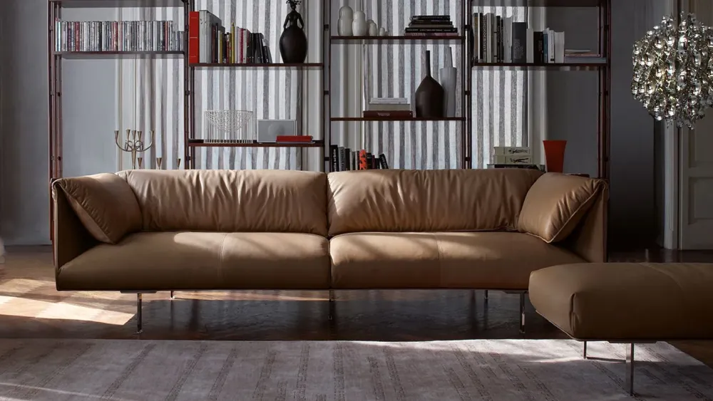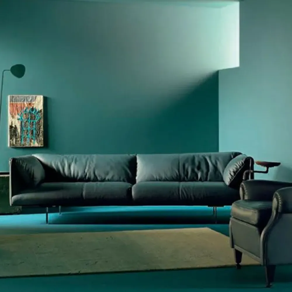 Struttura solida e soffice seduta per il modello di Divano Lineare pelle modello John-john di Poltrona Frau qui visibile. Un divano o una poltrona Poltrona Frau sono elementi che attrezzano in modo ottimale l’area del living, ambiente dedicato al relax e allo svago: il modello John-john qui presente diventerà protagonista del tuo living.