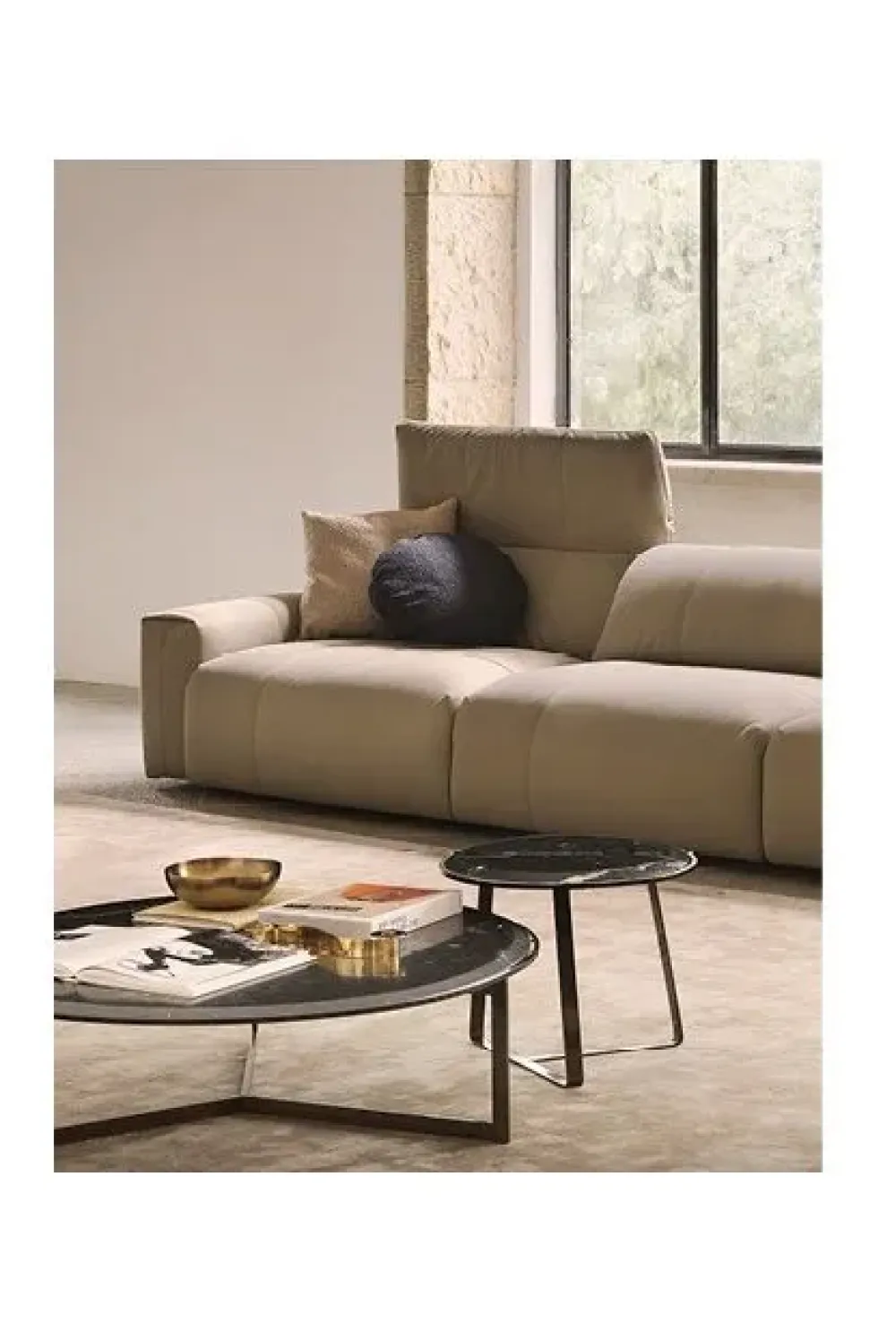 Designer MAURIZIO MANZONI, Un divano dalle forme morbide e rassicuranti, in cui la possibilità di movimento dello schienale, l aspetto soffice e l imbottitura esaltano il comfort dando vita a molteplici interpretazioni.