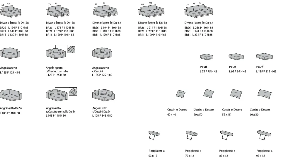 - Gli spazi indoor devono essere conformi alle necessità di chi li frequenta e gli arredi, tra cui altresì gli imbottiti, non devono mai risultare d’intralcio; il modello qui presente è appartenente alla fascia di imbottiti di lunghezza che va da 301 a 325 cm, risultando così ideale per un interno di diverse dimensioni.