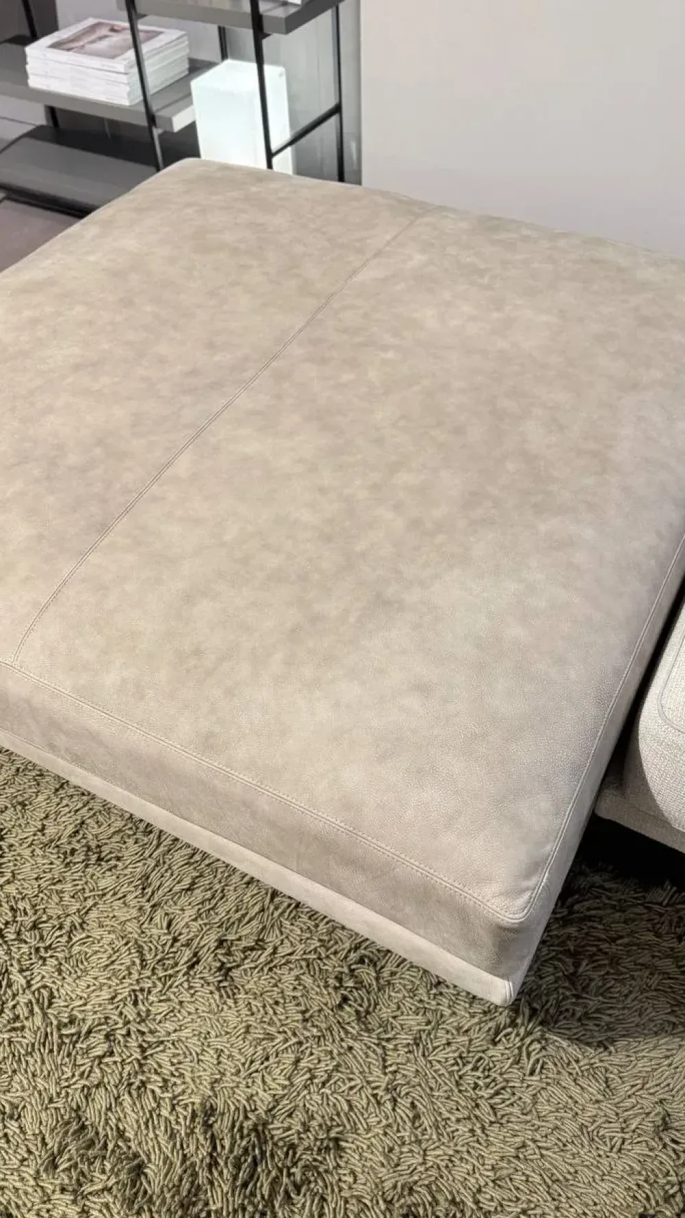 - POUF 130×130 cm senza bordino IN PELLE, colore SABBIA;
