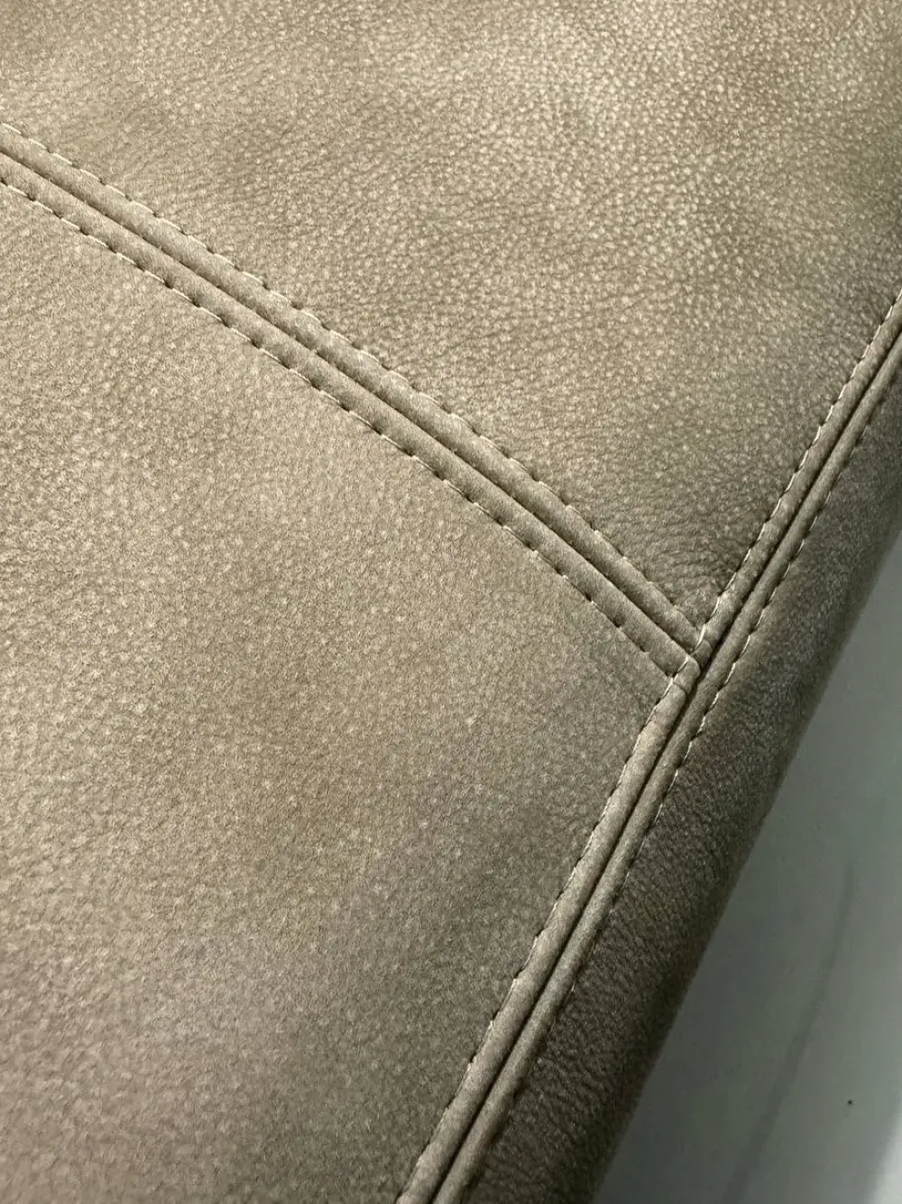 Lo schienale e il bracciolo, dalle forme trapezoidali, sono rivestiti in tessuto cat. D colore SABBIA, completamente sfoderabili.