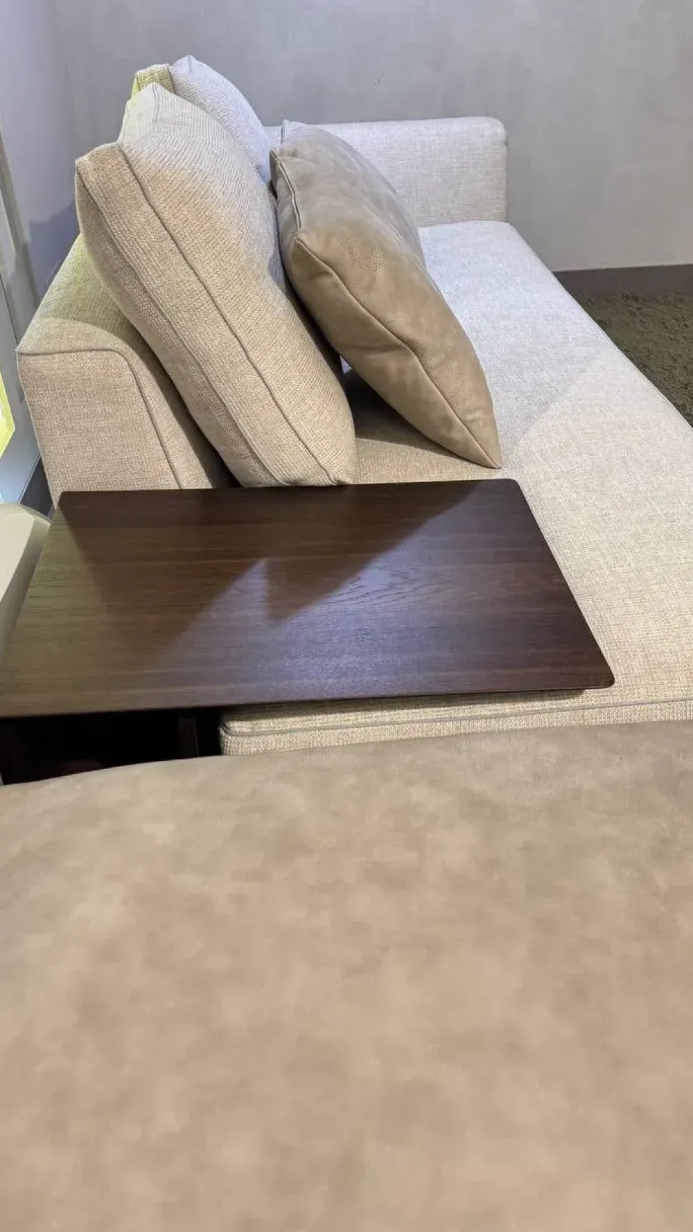 - Terminale SX cm 220 x 100 tessuto sabbia con piano d appoggio in rovere impiallacciato termotrattato;