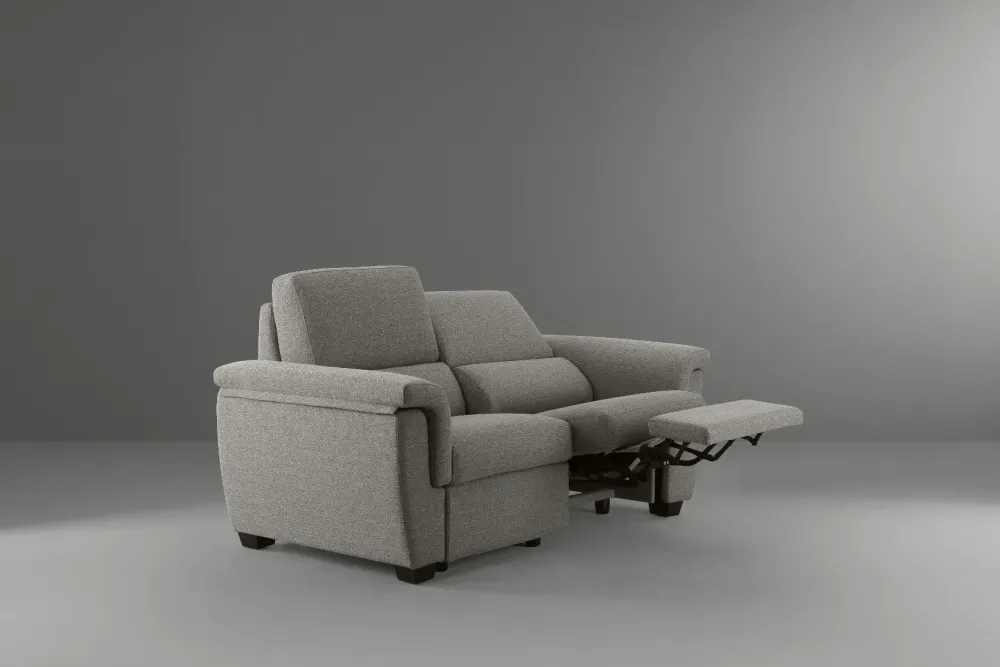 Divano lineare con doppio movimento elettrico, completamente sfoderabile, disponibile in diverse varianti di tessuto e di colore. Struttura realizzata in legno e imbottitura in poliuretano espanso.