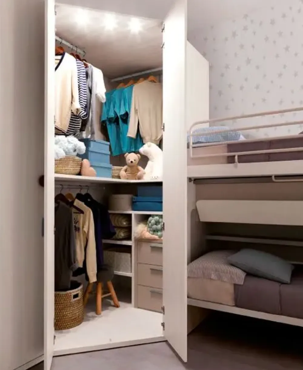 - Lo spazio junior deve essere arredato in modo da assicurare una serena quotidianità ai più giovani, in uno spazio molto ampio che dia loro la completa libertà di divertirsi e rilassarsi sempre seguendo le loro passioni: il brand propone una scelta quasi infinita di tipologie di camerette per le più diverse esigenze, da quelle a terra a quelle salvaspazio, da quelle per bebè a quelle per teenager; il modello Quik a020qui visibile fa parte della linea di camerette con letti a castello.