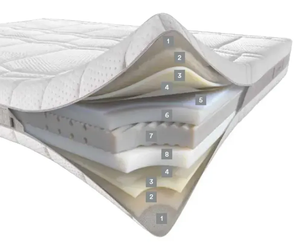 Dispositivo medico Prodotto certificatoLa fibra di bamboo e la microfibra di poliestere rendono l’imbottitura fresca, elastica e robusta. Abbinate al Myform Extension Extra Soft si ha una sensazione di morbidezza costante per tutto il riposo.
