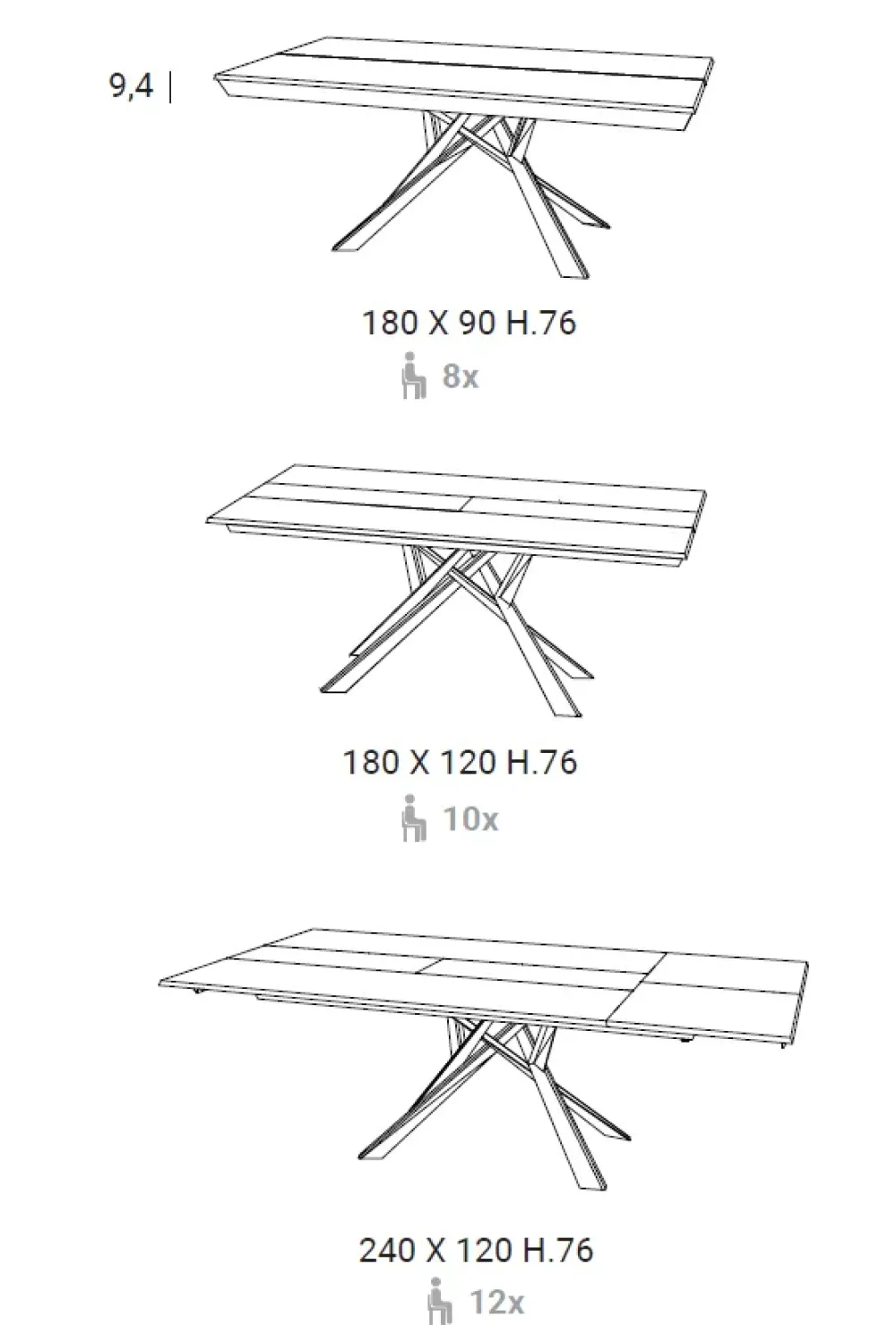 Misure tavolo chiuso: L.180 P.90 H.76 cm (8 persone)