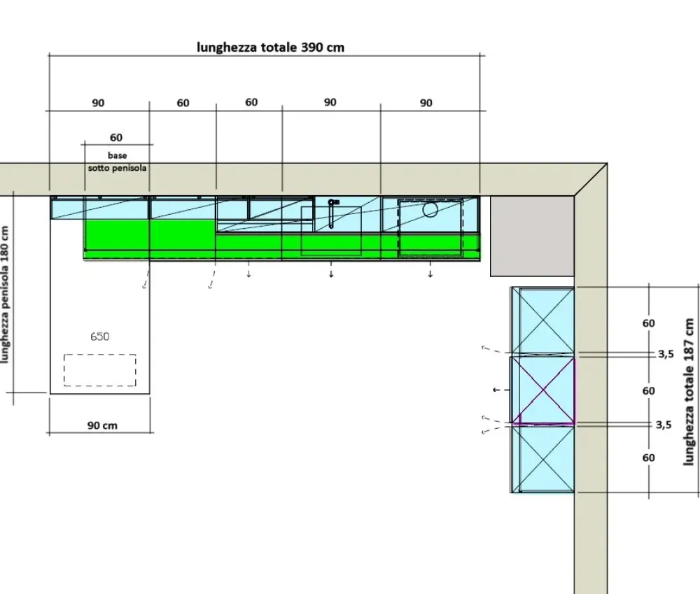 - Disposizione: con penisola
