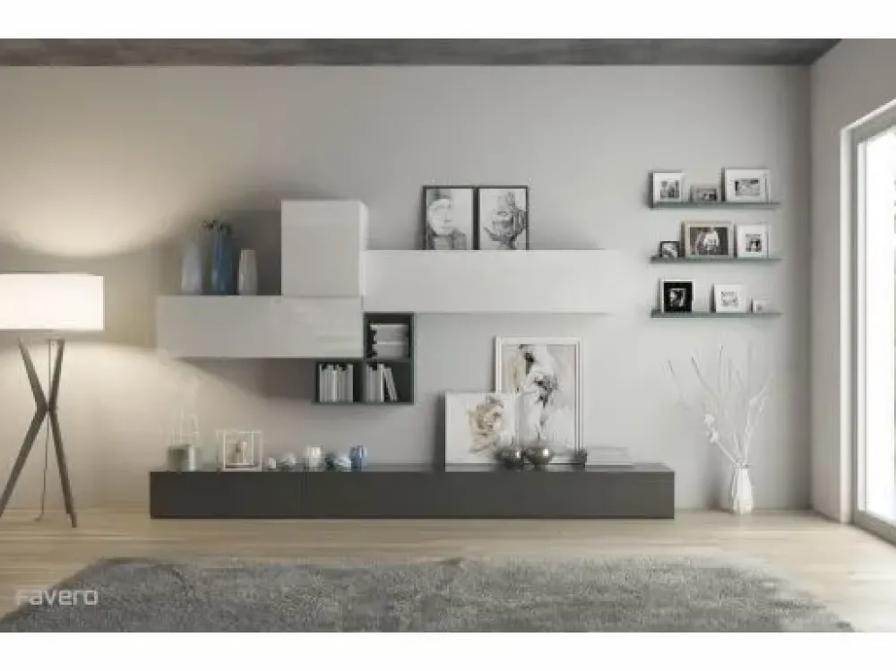 - Potrai usare questo tipo di parete attrezzata come una superficie di appoggio versatile e multifunzionale nel tuo soggiorno: che tu abbia intenzione di riporci oggetti d’uso quotidiano oppure propriamente decorativo, questo mobile Favero di ottima fattura sarà in grado di accontentare ogni sorta di necessità, coniugando doti di praticità e design del locale.