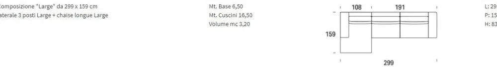 - I mobili sono da scegliere con cura non solo per quanto riguarda le finiture con cui sono stati costruiti, ma altresì per quanto riguarda le dimensioni e lo spazio che occupano negli interni domestici: il modello qui disponibile è appartenente alla fascia di imbottiti che vanno da 276 a 300 cm.