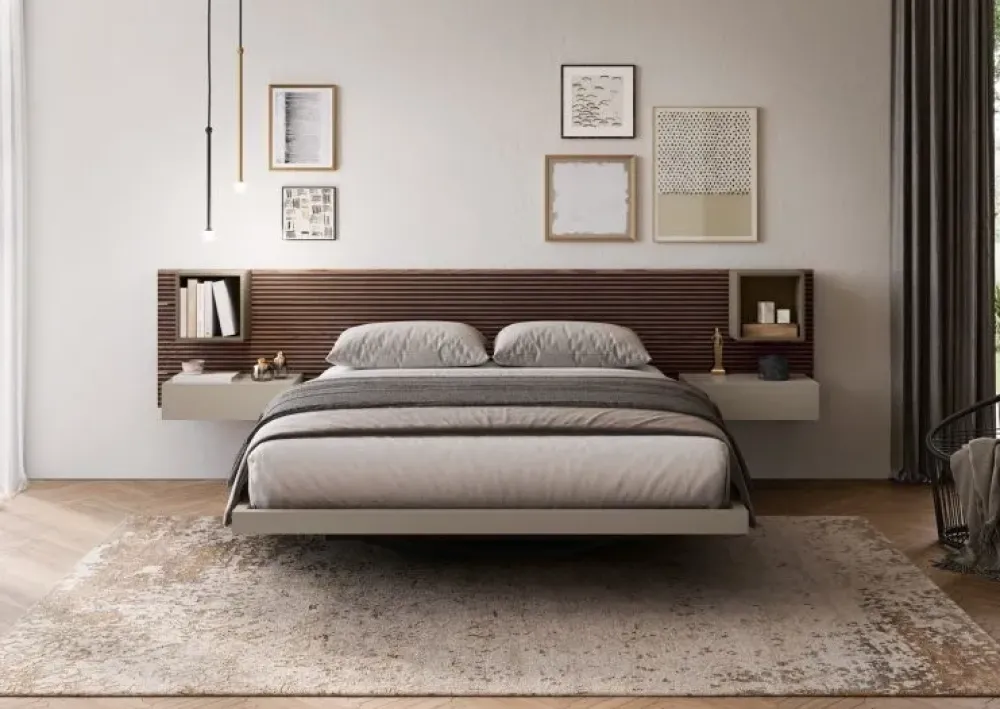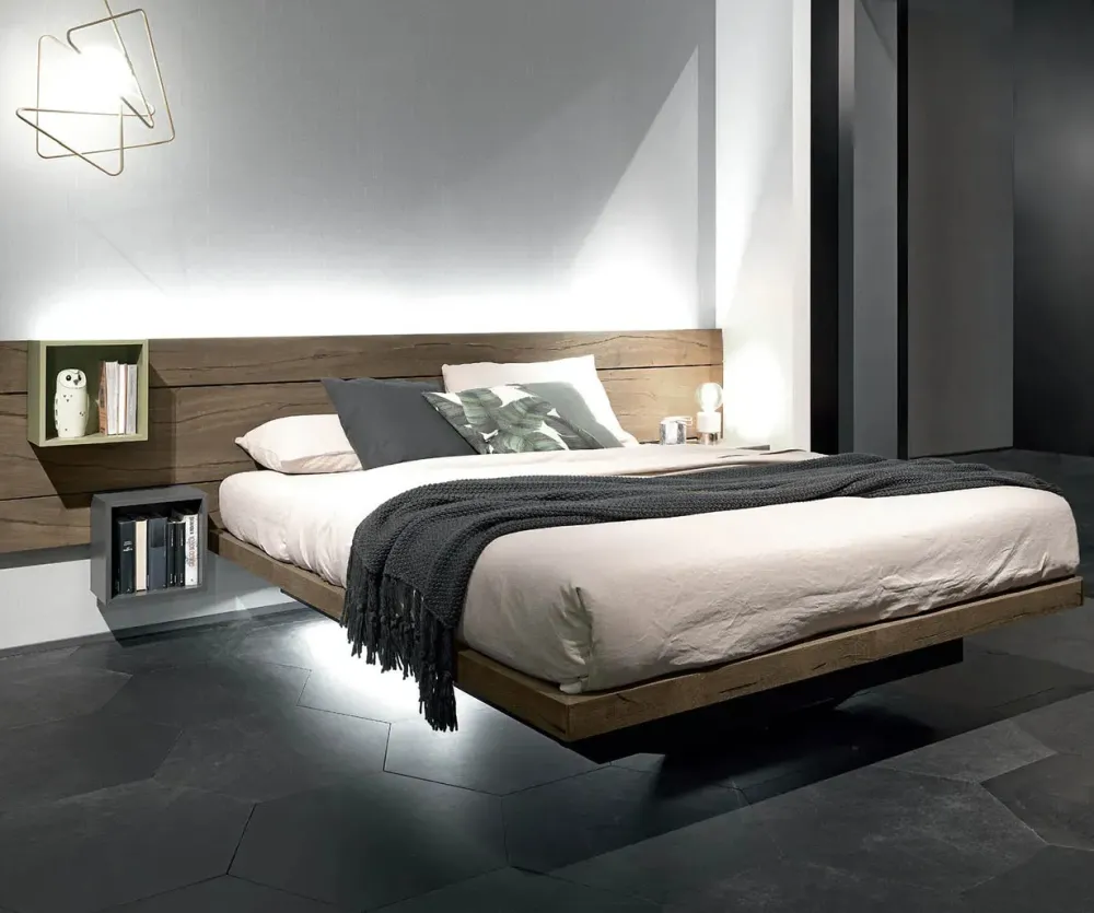 - Design Sospeso e Leggero: Il letto Sorvolo si distingue per la sua struttura sospesa, che conferisce un aspetto leggero e arioso, creando l’illusione che il letto stia “fluttuando” sopra il pavimento. Questo design innovativo contribuisce a dare un senso di spazio e luminosità alla stanza.