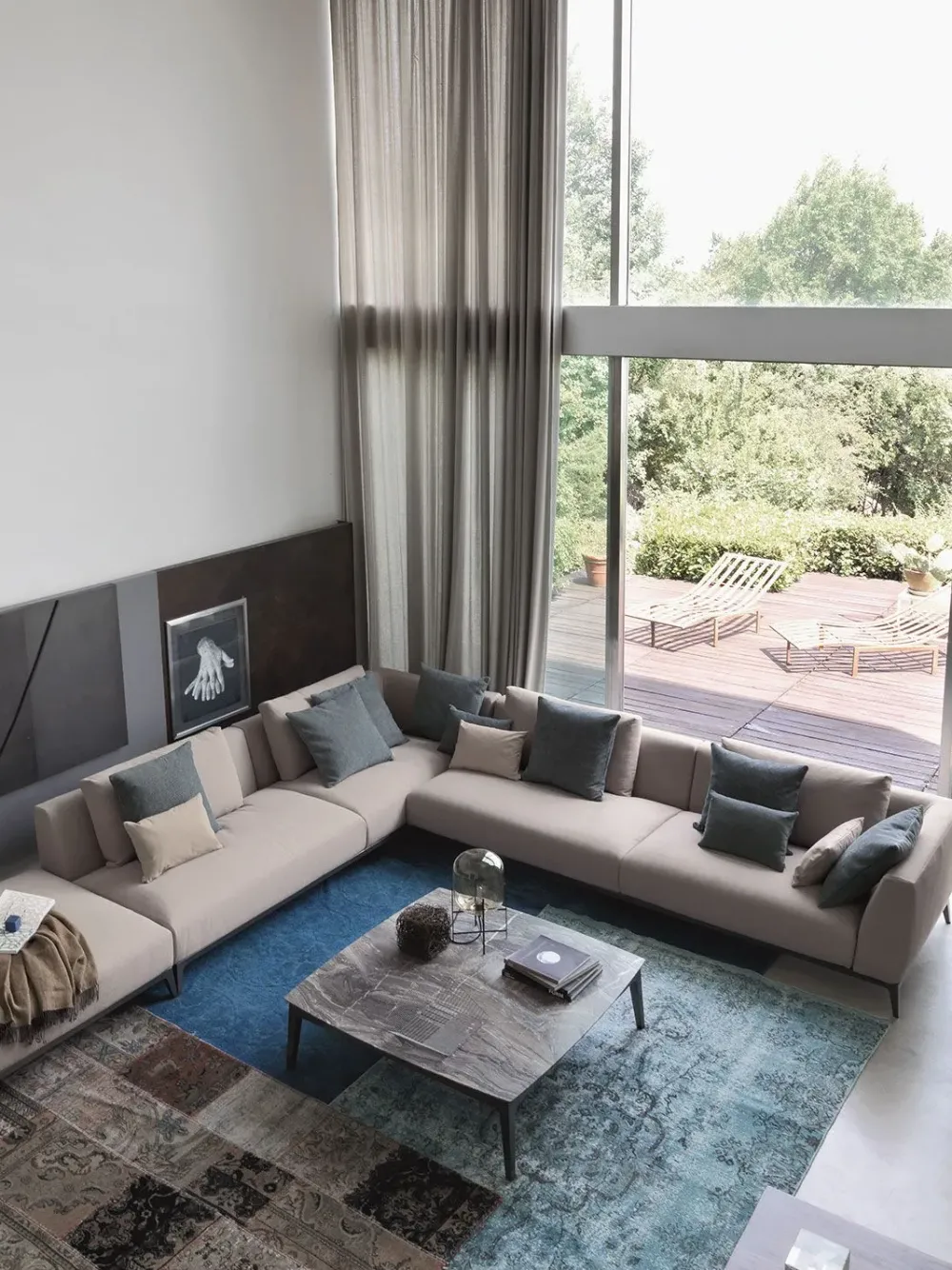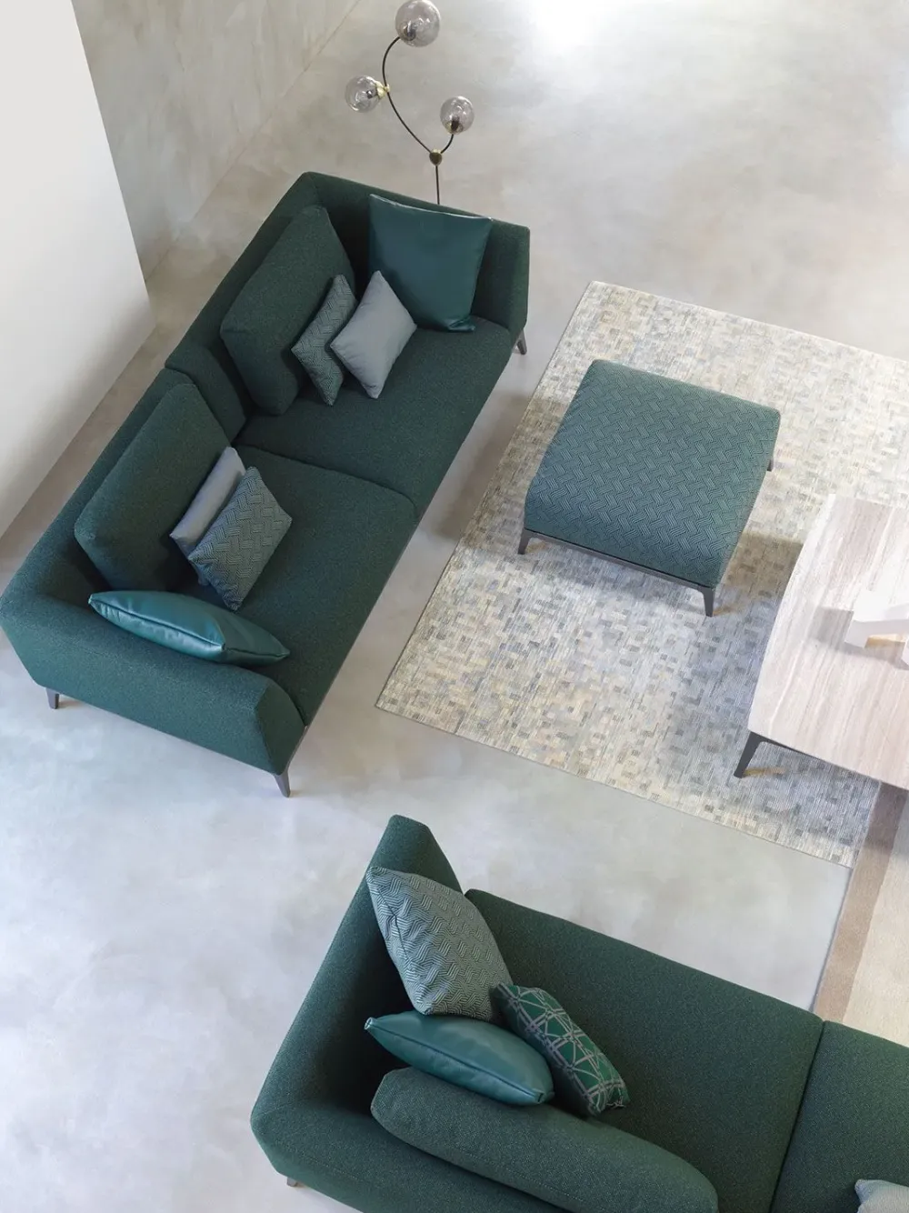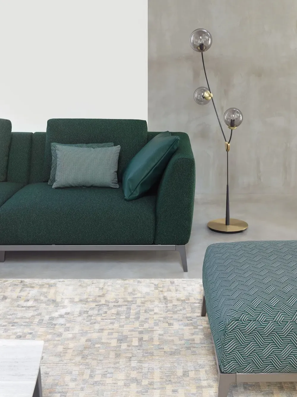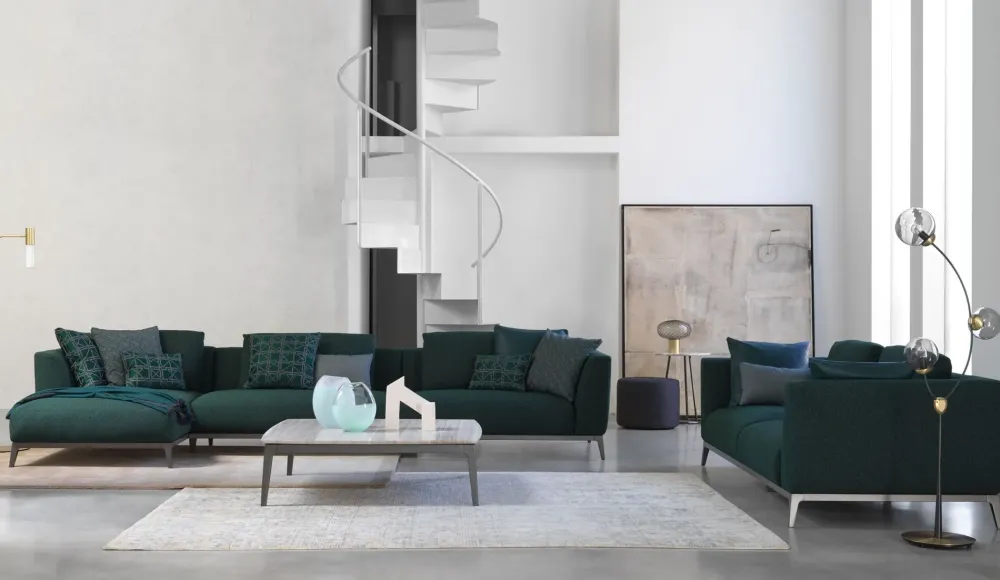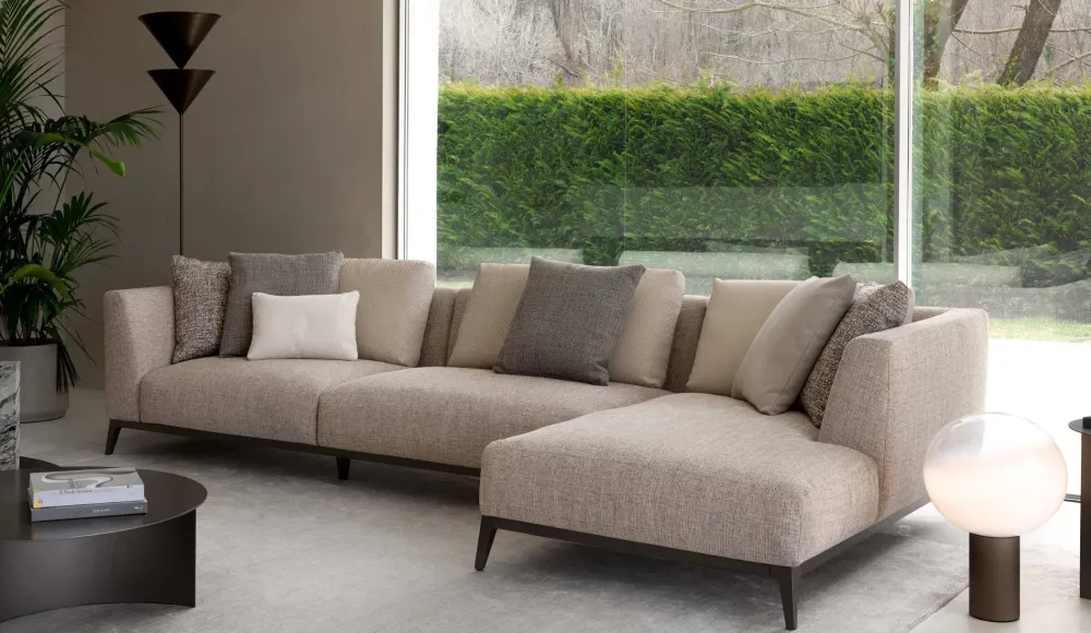 Divano componibile dalla linea esclusiva e raffinata, adatto ad ambienti contemporanei e di gusto ricercato.