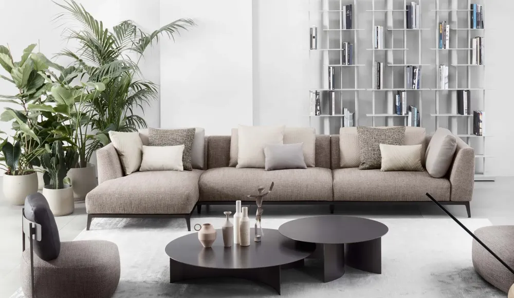 Un sofà nel senso più tradizionale del termine, studiato per rispondere ai cambiamenti del modo di vivere contemporaneo, senza nette separazioni tra la zona notte e la zona giorno. Il risultato sono sedute ampie e spaziose, estremamente confortevoli, di estrema flessibilità compositiva, che si completano nell’accostamento con i tavolini della stessa serie.