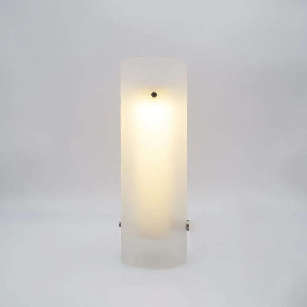 Lampada da tavolo a luce diffusa. Struttura in metallo. Diffusore esterno in vetro borosilicato. Diffusore interno in vetro borosilicato verniciato. Cavo di alimentazione, dimmer e spina neri. Alimentatore su spina con plug intercambiabili (uk – usa -europa – australia). Led integrato.