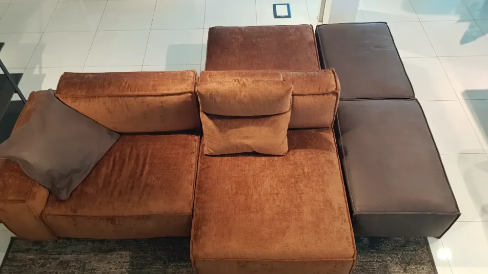 Rivestimento tessuto 1221 col 10 Ocra-pouf in pelle Oasis 30205 marrone scuro