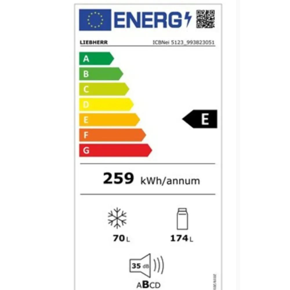Classe energetica E un equilibrio tra innovazione, prestazioni elevate e consumo controllato, in linea con gli standard dei frigoriferi Liebherr di fascia alta.