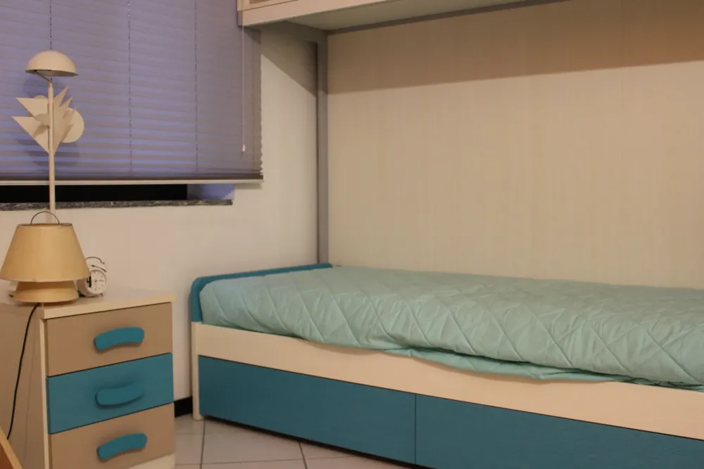- Nella camera dei bambini, non solo armadi e comodini offrono un plurifunzionale e spazioso spazio per la sistemazione delle proprie cose, ma concorrono pure i cassettoni estraibili: infatti, il letto incluso nel prezzo è assai contenitivo e pratico.