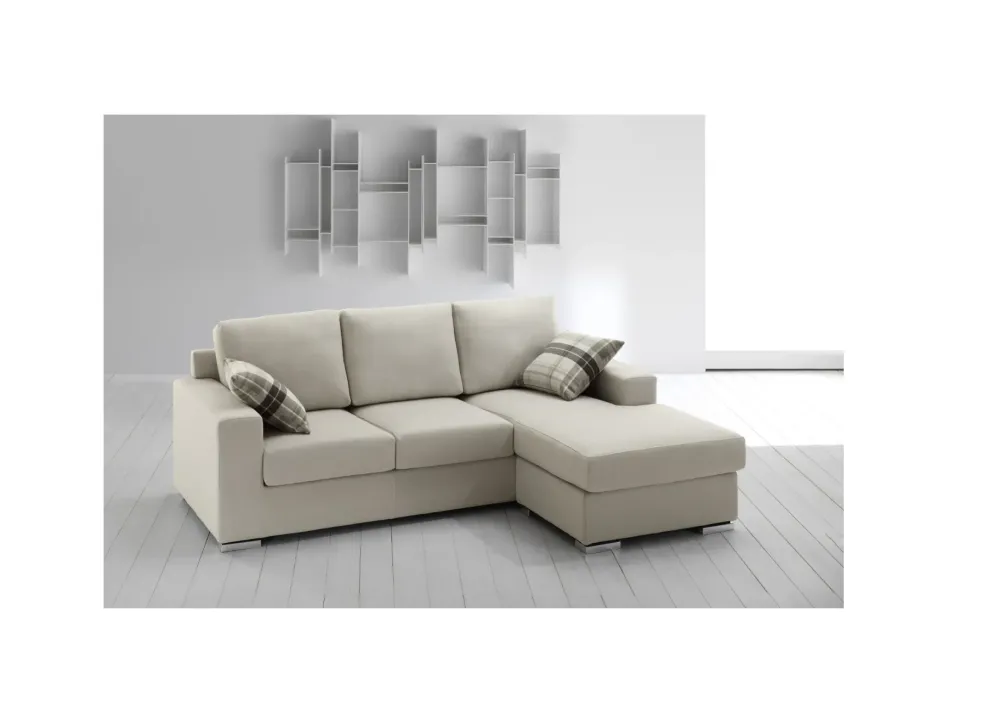 Questa composizione è caratterizzata dalla PENISOLA REVERSIBILE, e dal particolare piedino acciaio. Sono compresi nell offerta i due cuscini volanti quadrati sfoderabili e lavabili in lavatrice.