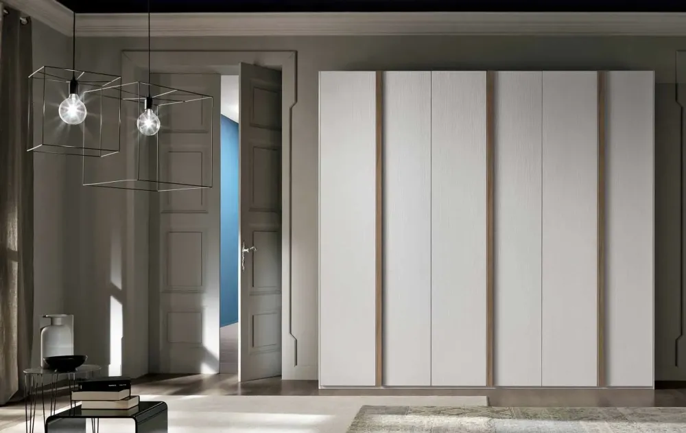 - L’acquisto di un guardaroba implica anche la valutazione del numero di ante: si può dare forma a varie versioni in base alle singole problematiche abitative. L’armadio City 122 qui visibile è uno dei nostri modelli a sei ante ma potrai richiedere soluzioni realizzabili su misura per te contattando i nostri professionisti d’arredo.