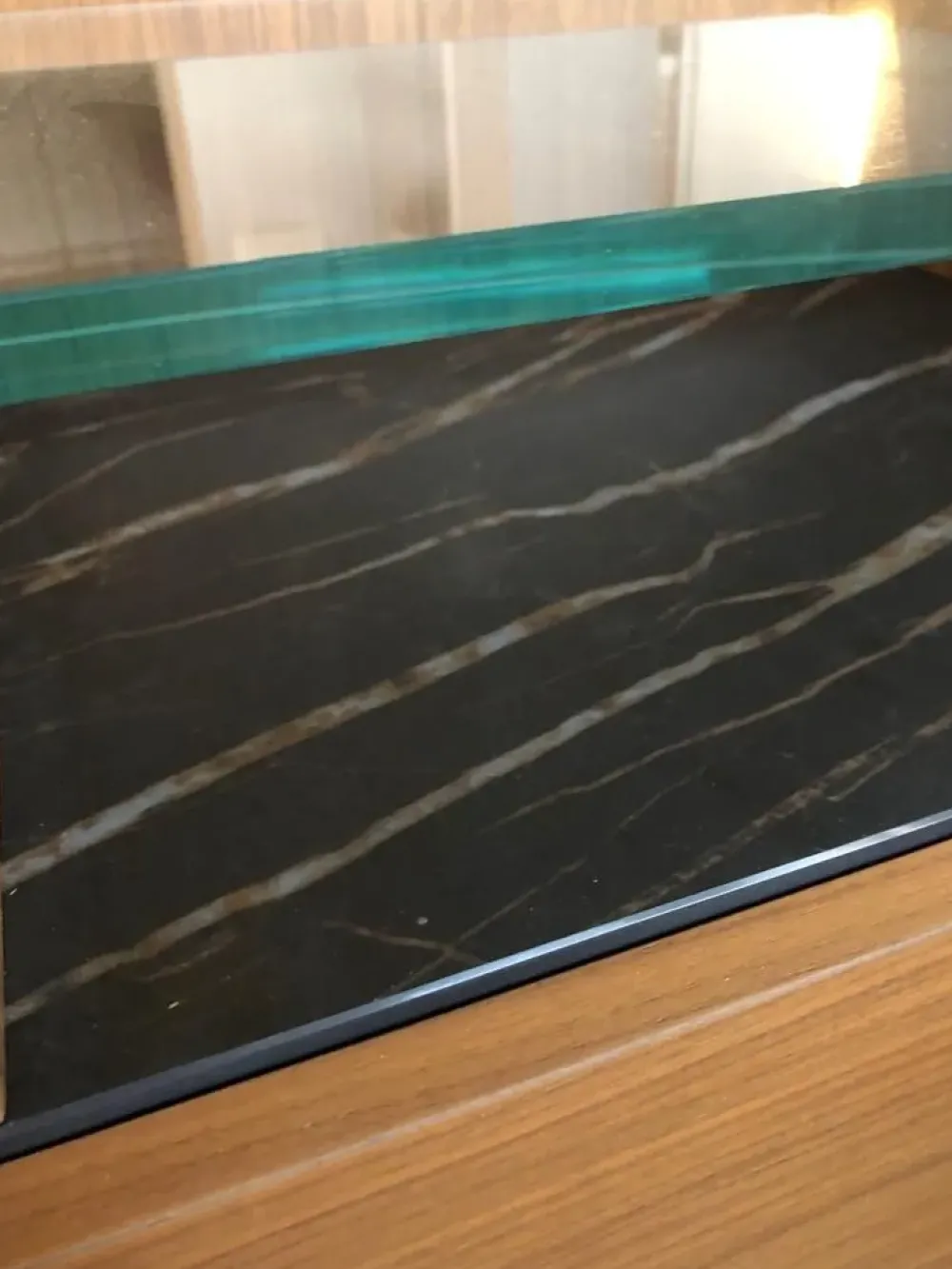 • Top: Ceramica effetto marmo Noir Desir opaco / Vetro extra-trasparente spessore 1,2cm