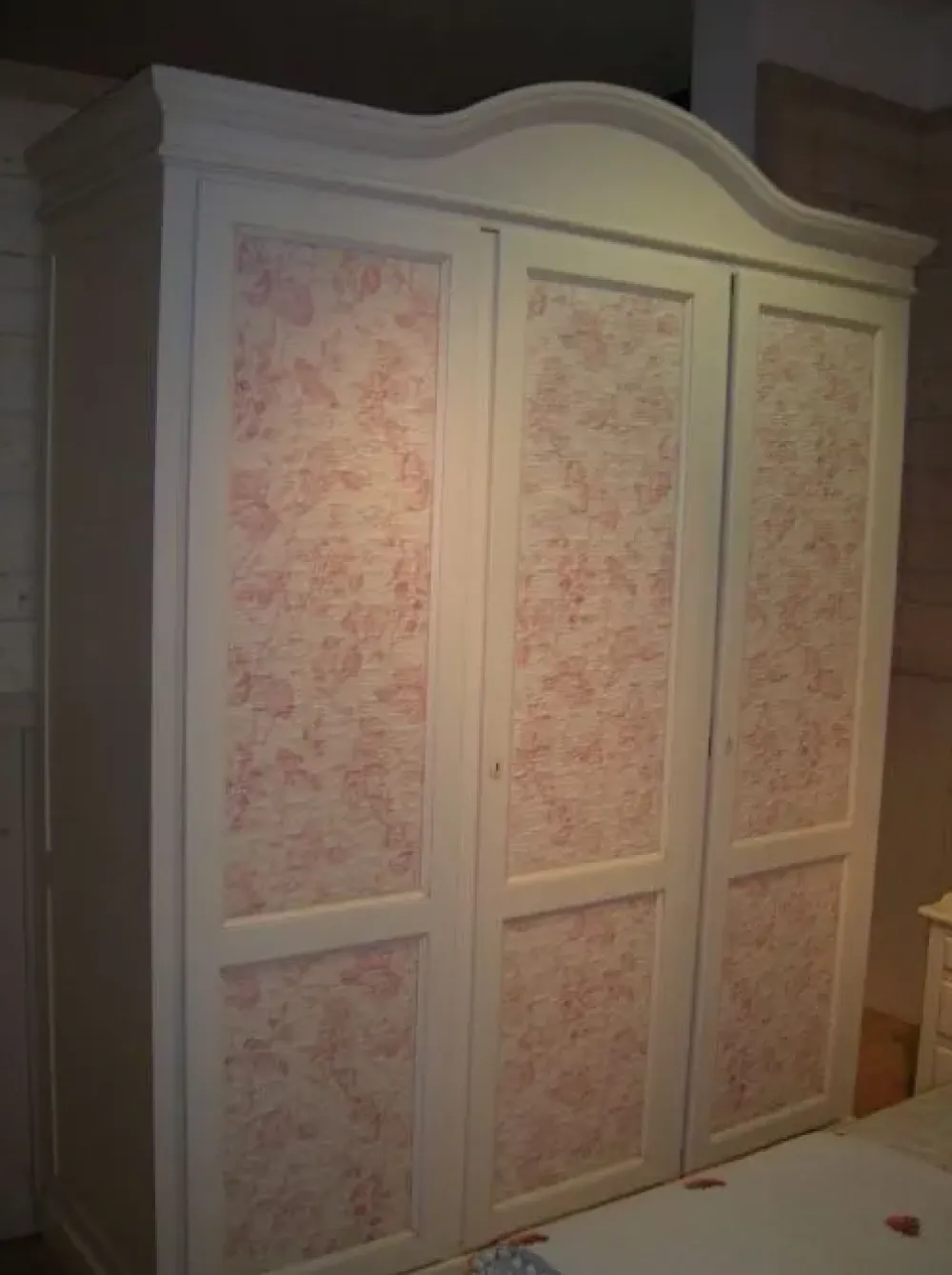 01-armadio sagomato 3 ante finitura avorio con tappezeria da 186x65x224h