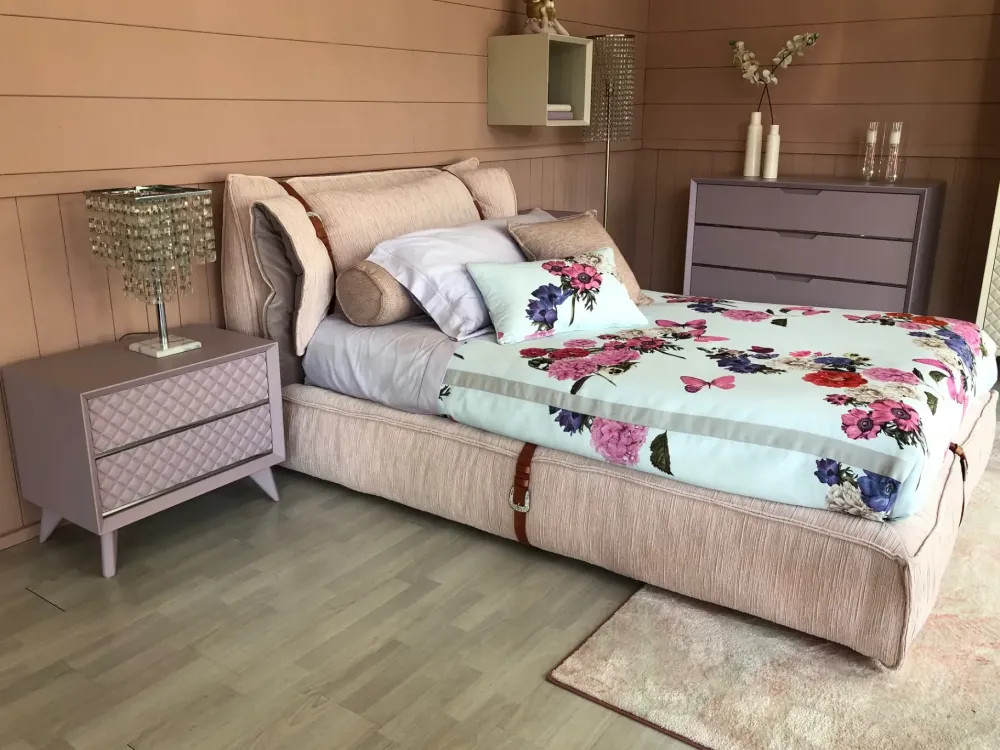 1 LETTO JORDAM CM 120 DA CM 147 X 223 IN TESSUTO CON CINTURA CUOIO COMPLETO DI SET LENZUOLA RASO ELITE, RULLO, SACCO COPRIPIUMINO, IMBOTTITURA TERMICA, CUSCINOCM 60X40 CUSCINO CM 50X50