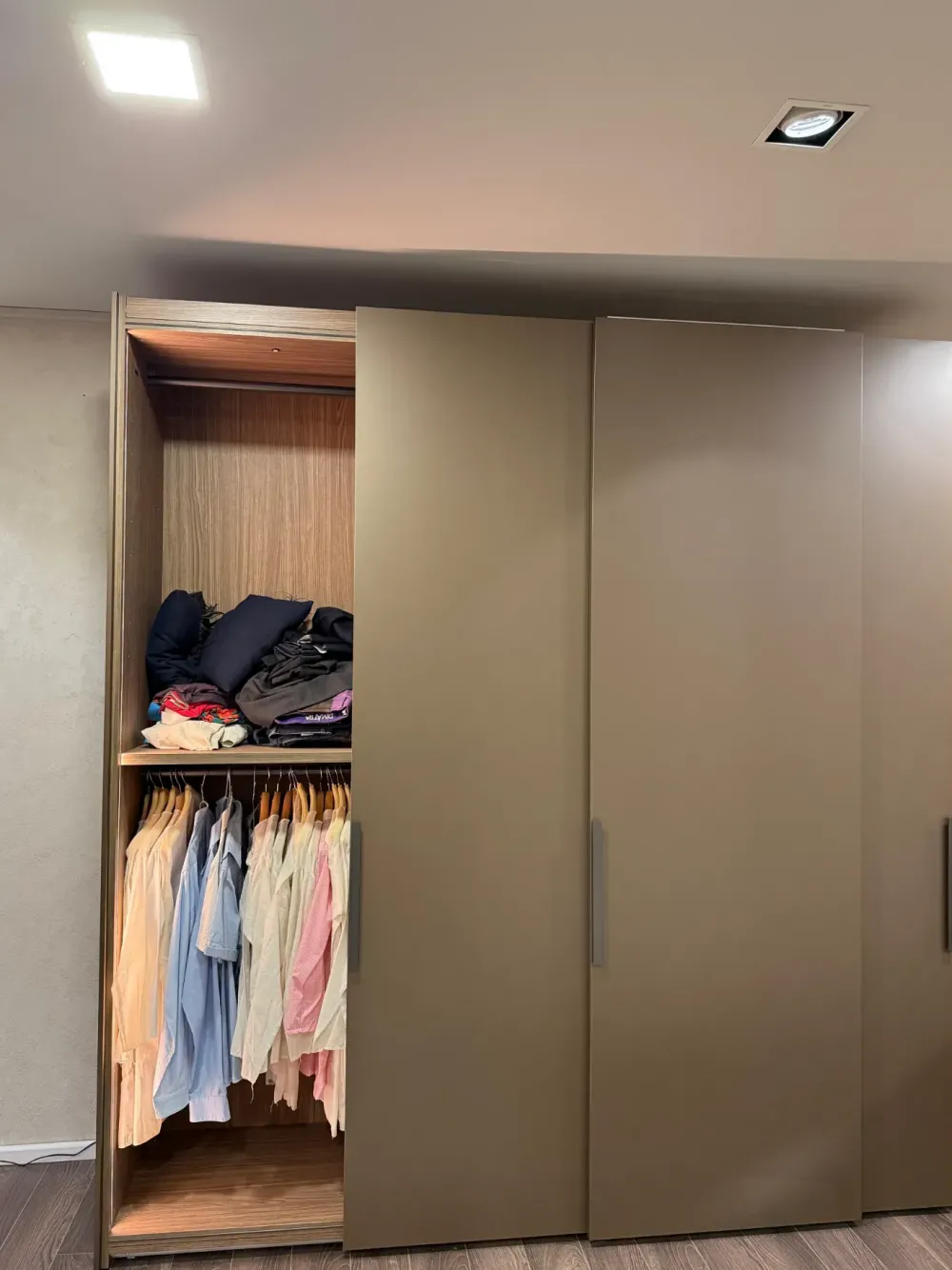 Il numero di ante è correlato abitualmente alle volumetrie all’interno dell’armadio: è fondamentale tenere in conto anche questo parametro prima di comprarne uno, poiché dalle dimensioni dell’arredo potrà dipendere l’adeguata ottimizzazione degli interni e la tua quotidiana tranquillità . Tornando al modello qui visibile, possiede tre ante.