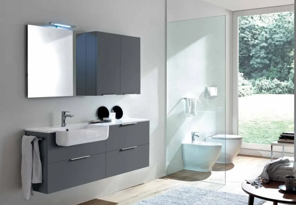 - Questa soluzione include uno specchio di classe ed eleganza, pensato appositamente per definire l’estetica dell’ambiente e per agevolare le consuete pratiche di cura della propria persona a cui esso è dedicato.