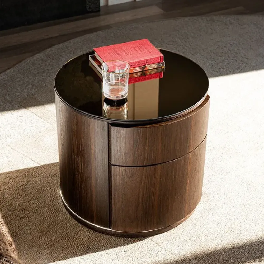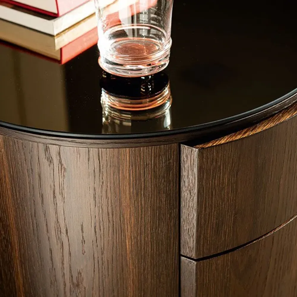 Il top specchiato con finitura bronzea riflette le immagini con una calda sensualità, conferendo alla camera da letto un’atmosfera rassicurante e accogliente. Il profilo inferiore, infine, è in acciaio cromato, aggiungendo un tocco di lucentezza che arricchisce ulteriormente il comodino e l’intero arredamento della tua camera matrimoniale di design.