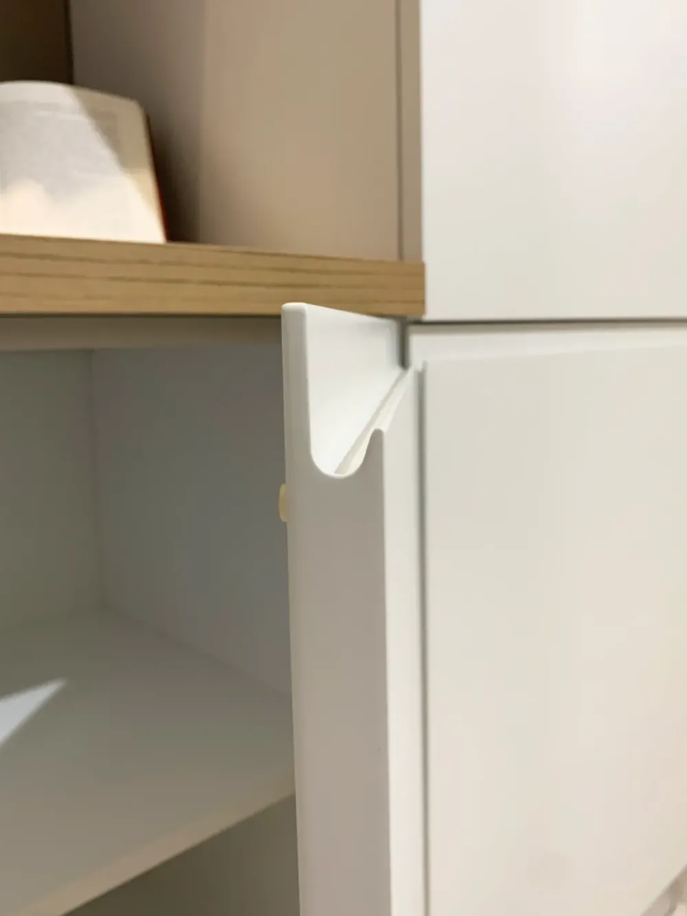La cucina Pura si contraddistingue per la sua eleganza e minimalismo estetico risultato di accurate scelte di materiali e finiture. Lanta di questa cucina è in laccato opaco bianco neve, la cui maniglia J fresata direttamente sulle ante offre una comoda presa, creando un elegante connubio tra stile contemporaneo e funzionalità.