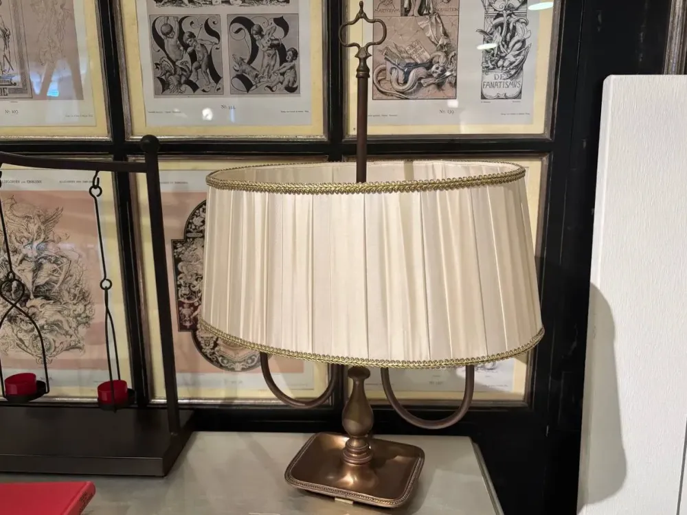 Lampada classica, in tessuto con struttura in ottone