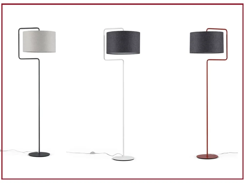 Struttura in metallo colorato, design essenziale e paralume in tessuto. MORFEO è la lampada da terra che accende le tue serate.