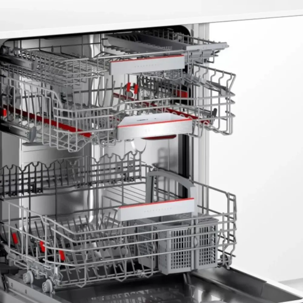 Il sistema AquaStop è costituito da uno speciale tubo di ingresso a doppia parete, una valvola di sicurezza e una vaschetta del pavimento con interruttore a galleggiante e offre una protezione al 100% contro i danni causati dall’acqua: Bosch garantisce che il dispositivo durerà per tutta la vita. Un punto luminoso rosso sul pavimento ti dice se la tua lavastoviglie completamente integrata è ancora in funzione o è già pronta.