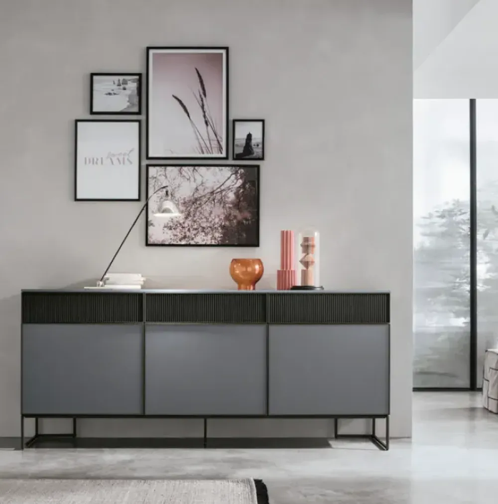 Particolarmente degno di nota è il basamento in metallo, tono su tono con il resto della madia, che conferisce leggerezza alla struttura e garantisce un perfetto equilibrio tra funzionalità e design.