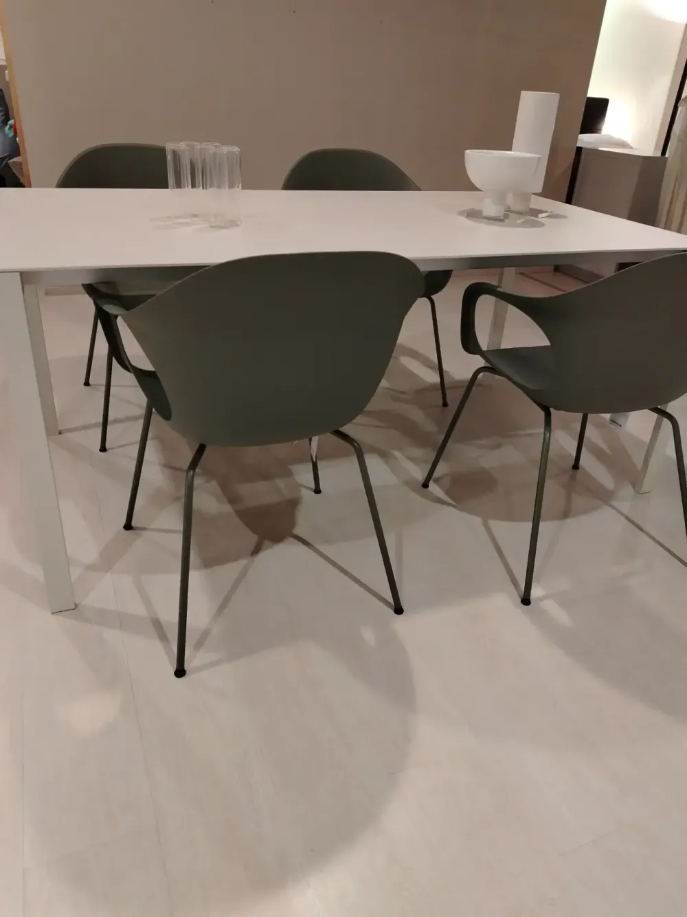 nr. 4 poltroncine Elephantino con scocca in polipropilene colore Agave , 4 gambe metalliche in tinta (totale per 4 pz. euro 700,00)