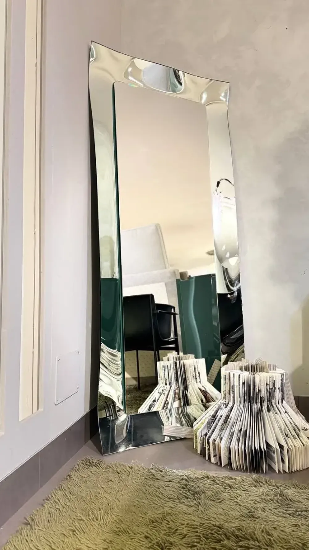 FUORI PRODUZIONE / Con Mirage lo specchio rivela tutte le sue potenzialità espressive, grazie alla perfezione della lavorazione artigianale della cornice. Imponente e affascinante, questo specchio è caratterizzato da una cornice specchiante curvata che dà vita a sinuosi riflessi luminosi. La tridimensionalità della cornice crea un illusorio effetto decorativo di grande impatto, e la superficie piana specchiante sembra aprire a una nuova suggestiva dimensione di inedita profondità.