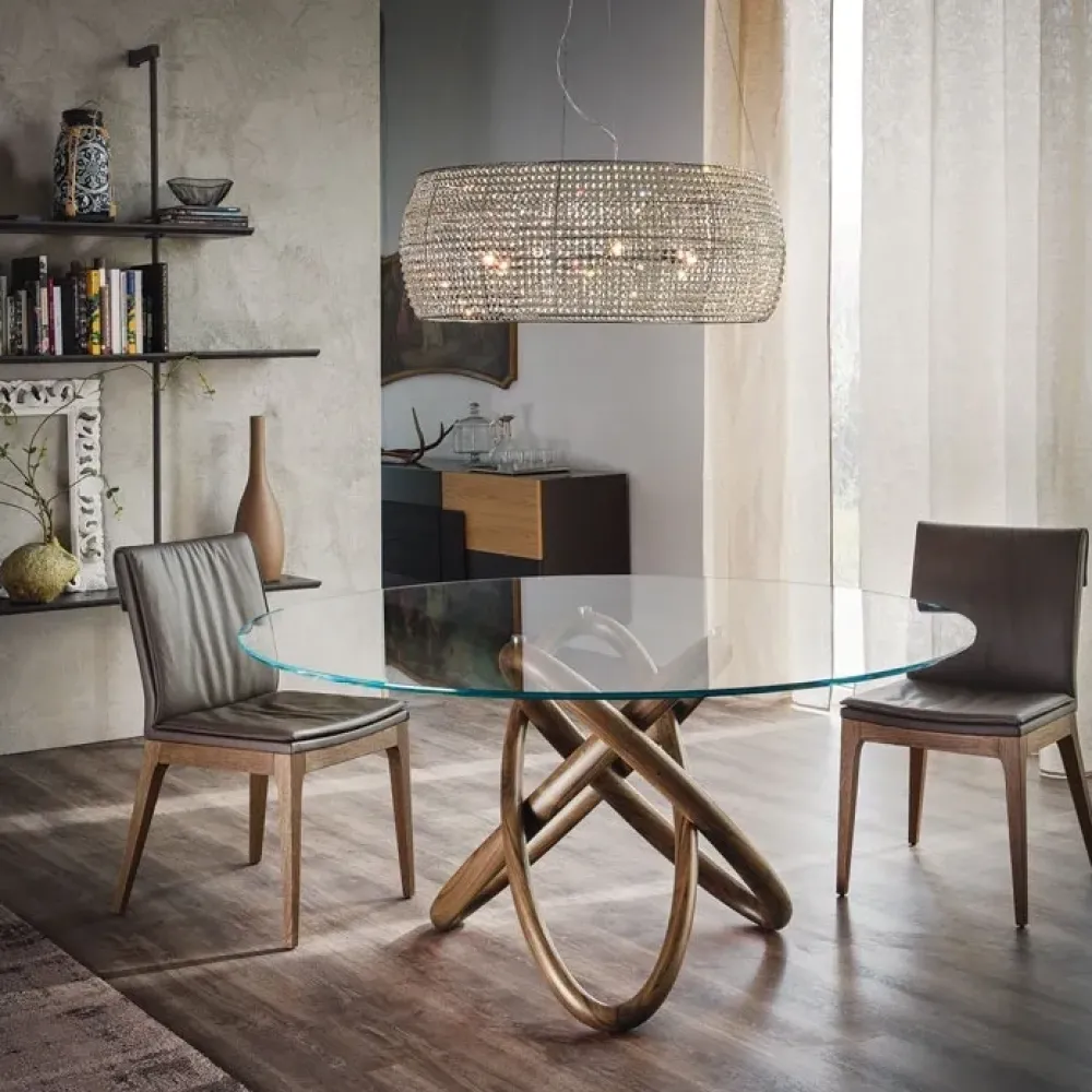 - Materiale piano in vetro: il piano del tavolo Carioca è realizzato in vetro, che conferisce un tocco di eleganza e modernità all’ambiente.