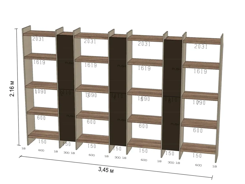 Questa soluzione va da 301 a 350 cm di larghezza e fa parte della nostra linea di librerie Imab.