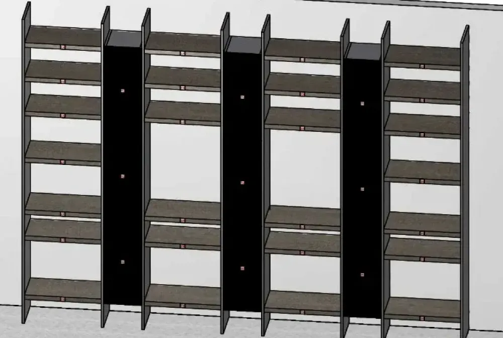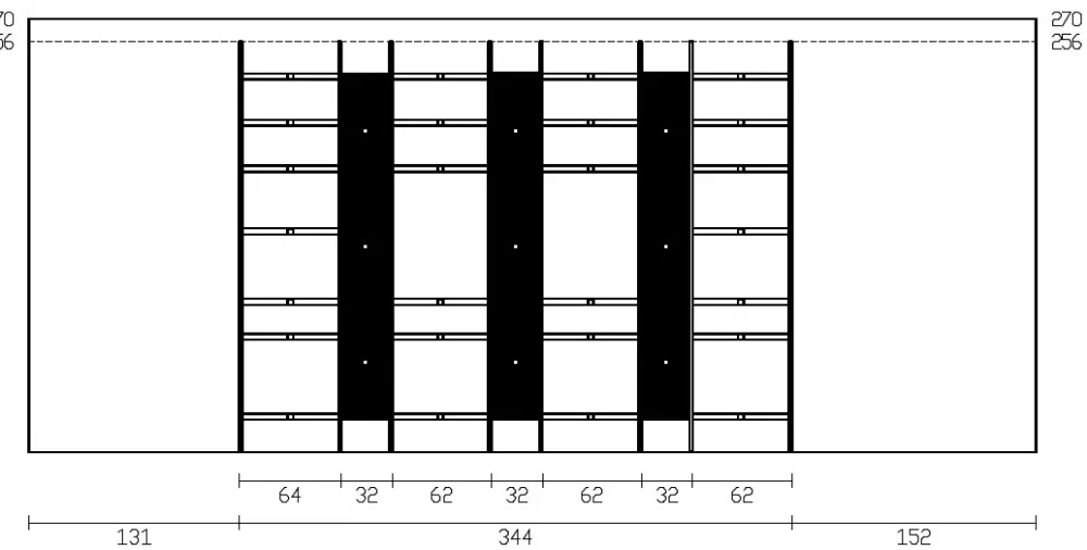 Questa libreria Qmc024 per la zona giorno va da 301 a 350 cm di larghezza.