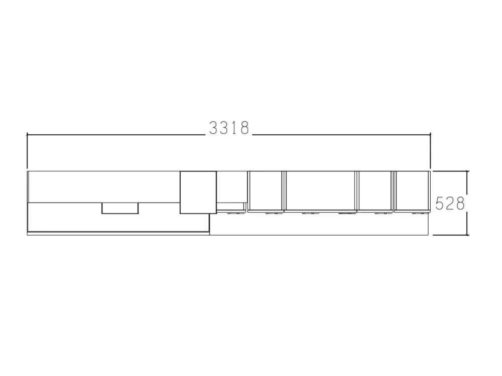 Parete attrezzata composizione mix colori con base a terra con cassettoni, pensili (sistema apertura push and pull) e ripiani sospesi con elementi metallici a giorno; Dimensioni: L. 330 cm x P. 53 cm x H. 220 cm. Finitura basi a terra e top basi: Laccato opaco Caffè; Finitura pensili anta Push and pull: mix colori Rovere Tabacco, Laccato opaco Oliva, Laccato opaco Caffè; Finitura mensolone: Rovere Tabacco; Finitura elementi metallici a giorno: Miele RAL 8001. Possibilità di abbinare tavolo, sedie e madia con stessa finitura e colore. Possibilità di variare composizione in dimensioni e finiture con consulenza e progettazione personalizzata gratuita.