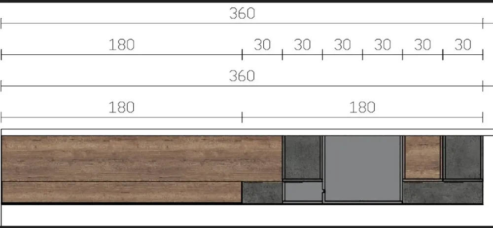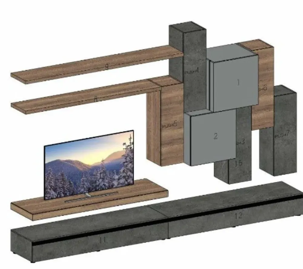 - Se desideri ultimare il living con una parete attrezzta push–pull, il modello Parete sfalzata visibile in foto fa al caso tuo.