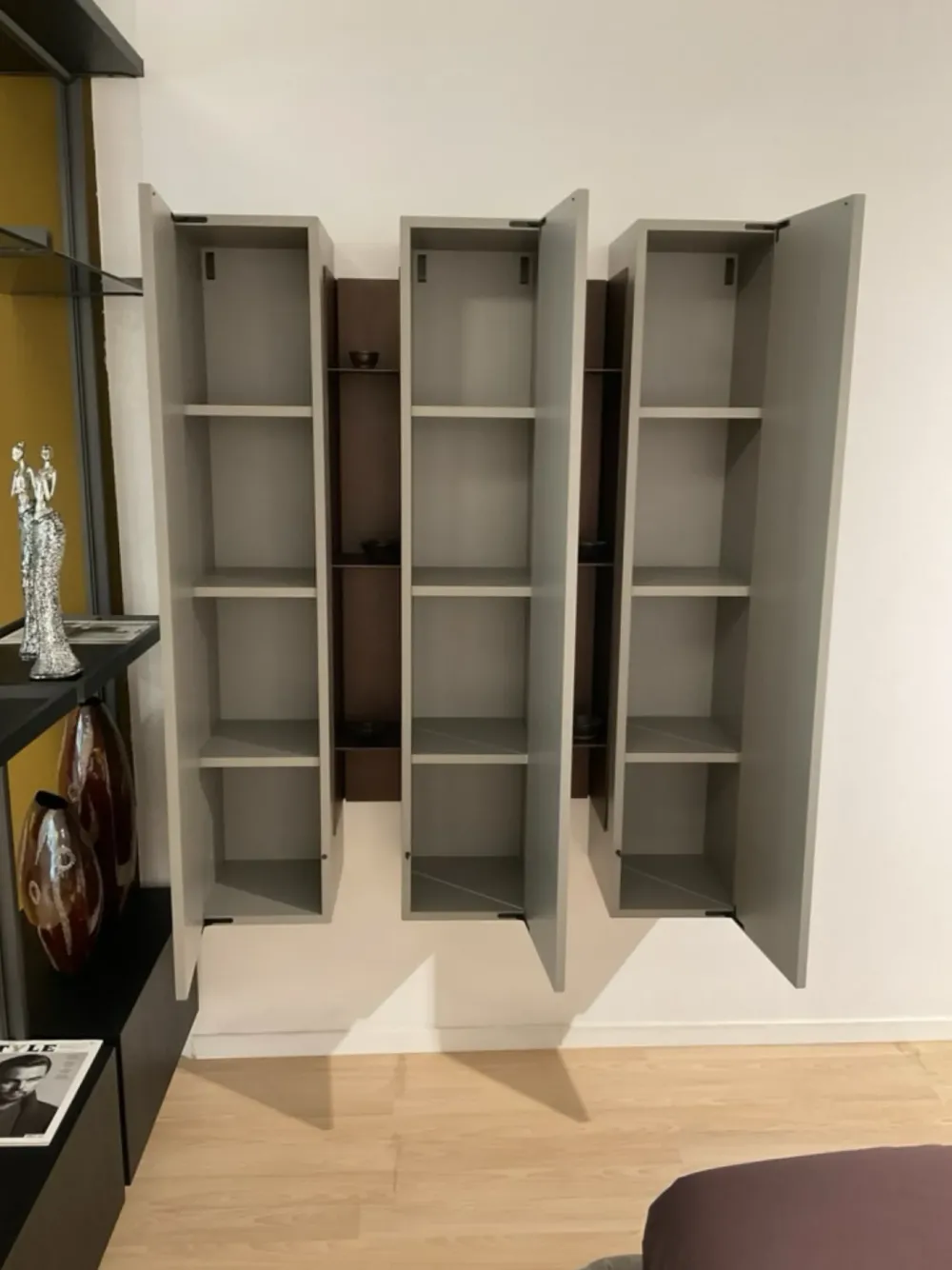 Pilastrini Mod. Wallover in laccato opaco con vani a giorno metallo “Oxid Rame” retroilluminato , completo di telecomando dimerabile
