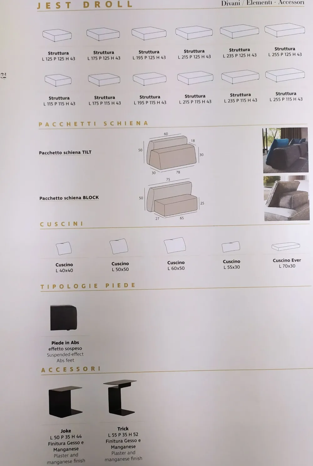 - L’imbottitura di Jest droll è in poliuretano di qualità eccellente, in grado di coniugare la tipica morbidezza con la resistenza del materiale nel tempo al gravoso utilizzo.