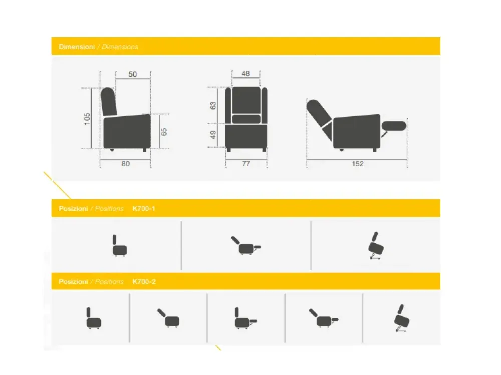 - Il modello K700-2 qui presente appartiene alla nostra serie di poltrone che vanno fino a 100 cm in lunghezza, risultando così ideali per rendere operativo e pratico uno spazio di svariate misure e conformazioni.